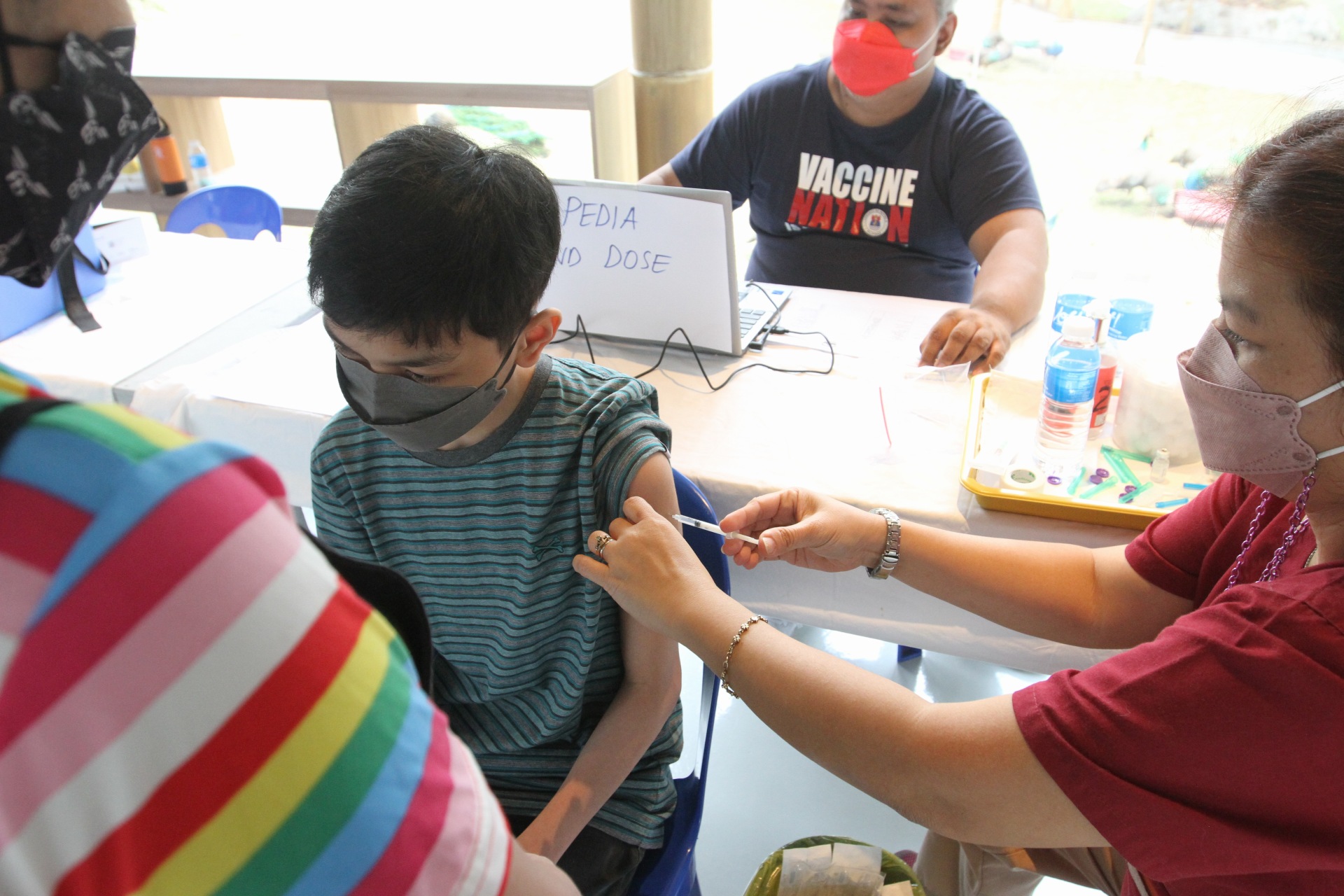 A teenage boy receives a Covid-19 vaccine dose at the newly-renovated Manila Zoo on Wednesday (Jan. 19, 2022). The Manila Zoo will accommodate a maximum of 1,000 daily by schedule, including the companions, and they are also allowed to roam around free of charge from 8 a.m. to 8 p.m. (PNA photo by Avito Dalan)