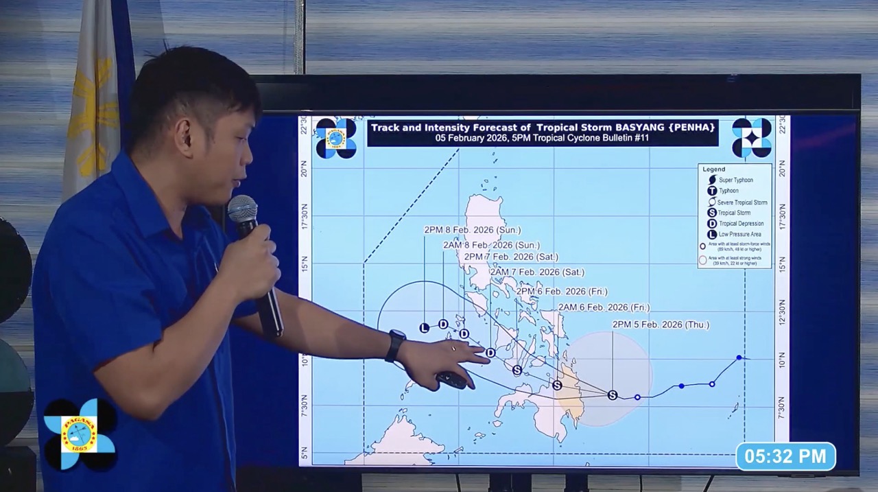 Interaction with the landmass will gradually weaken Basyang into a tropical depression by Saturday, Feb. 7, and low pressure area by Sunday, Feb. 8.
