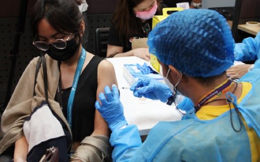 Home An employee of a business outsourcing company in Makati City gets her COVID-19 vaccine booster shot on Tuesday (March 8, 2022). The event is a prelude to the fourth edition of the national vaccination drive “Bayanihan, Bakunahan” on March 10 to 12. (PNA photo by Jess M. Escaros Jr.) An employee of a business outsourcing company in Makati City gets her COVID-19 vaccine booster shot on Tuesday (March 8, 2022). The event is a prelude to the fourth edition of the national vaccination drive "Bayanihan, Bakunahan" on March 10 to 12. (PNA photo by Jess M. Escaros Jr.)