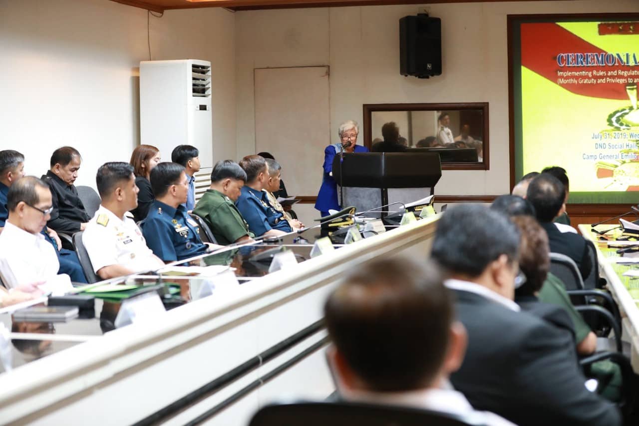 QUEZON CITY – Recognizing the self-sacrifice and distinctive acts of heroism and gallantry of military heroes, Department of Education (DepEd) Secretary Leonor Magtolis Briones joined Cabinet secretaries in the ceremonial signing of the Implementing Rules and Regulations (IRR) of Republic Act (R.A.) No. 9049, otherwise known as “An Act Granting Monthly Gratuity and Privileges to an Awardee of the Medal of Valor” at Camp Aguinaldo on July 31.