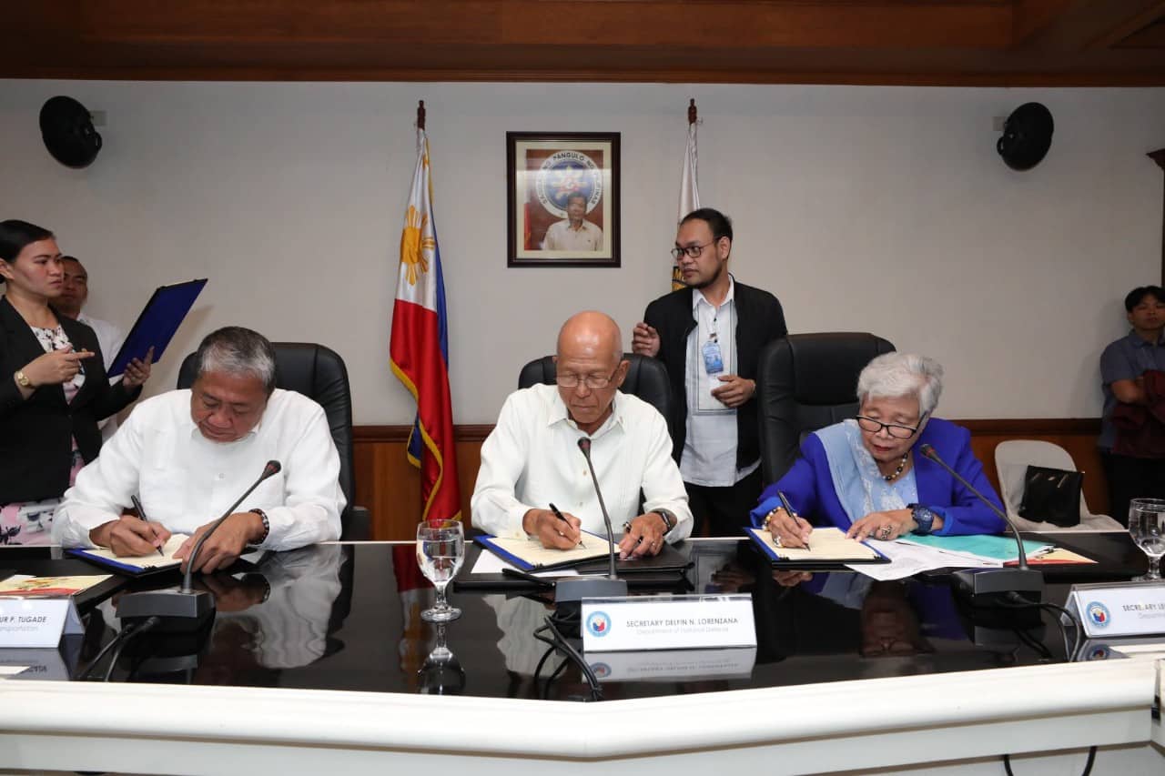 The ceremonial signing was graced by the 13 principal signatories headed by the Department of National Defense (DND) Secretary Delfin Lorenzana; DepEd Secretary Briones; Department of Transportation (DOTr) Secretary Arthur Tugade, Department of Environment and National Resources (DENR) Secretary Roy Cimatu; Department of Interior and Local Government (DILG) Secretary Eduardo Año; Armed Forces of the Philippines (AFP) Chief of Staff Gen Benjamin Madrigal Jr.; Commission on Higher Education (CHED) Chairperson Prospero De Vera Jr.; Civil Service Commission (CSC) Chairperson Alicia Dela Rosa-Bala; National Housing Authority (NHA) represented by Susan Nonato; Department of Health (DOH) Secretary represented by Assistant Secretary Elmer Punzalan; Department of Agrarian Reform (DAR), Department of Budget and Management (DBM), and Department of Finance officials; and the MOV awardees.