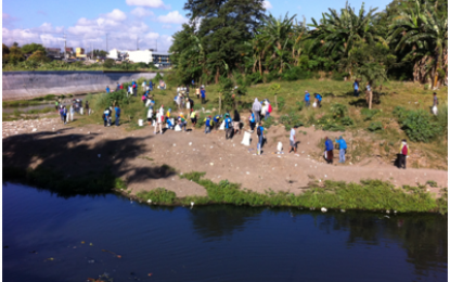 Clad in working clothes and uniforms with gloves, sticks, rakes and shovels, the volunteers started fishing out from the blackish river the trash and assorted garbage strewn on both riverbanks.