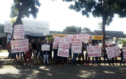 SAN JOSE DE BUENAVISTA, Antique — Job orders of the provincial government of Antique stage a rally in front of the capitol while the Sangguniang Panlalawigan (SP or Provincial Board) was holding their session Thursday morning.