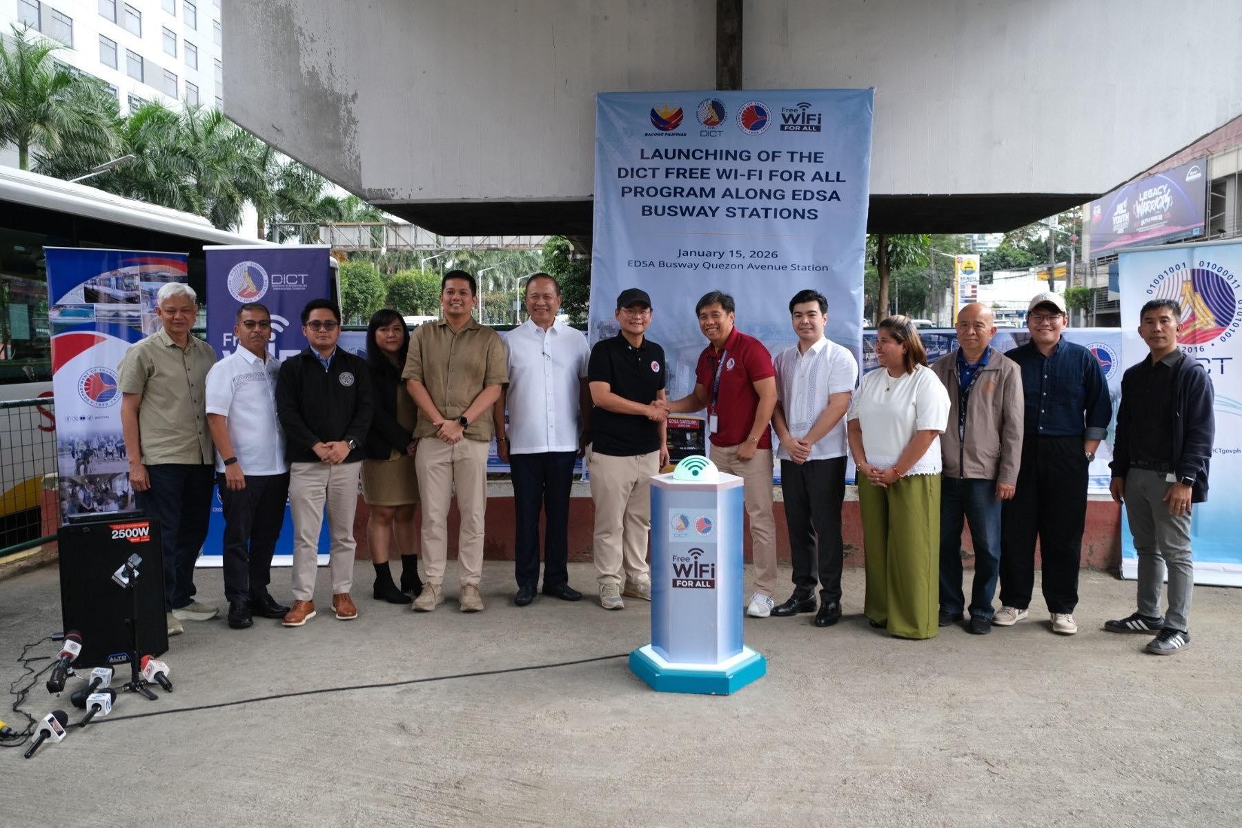 FREE WI-FI FOR ALL. DOTr Sec. Giovanni Lopez and DICT Sec. Henry Aguda lead the launch of the Free Wi-Fi for All Program for all EDSA Busway stations at the Quezon Avenue Station on Thursday, Jan. 15, 2026. (Photo courtesy: DOTr)