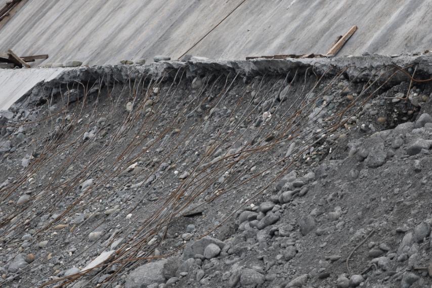 The flood control project was found to have foundations buried at a depth of three meters instead of 12 meters, which was indicated in its construction plan.