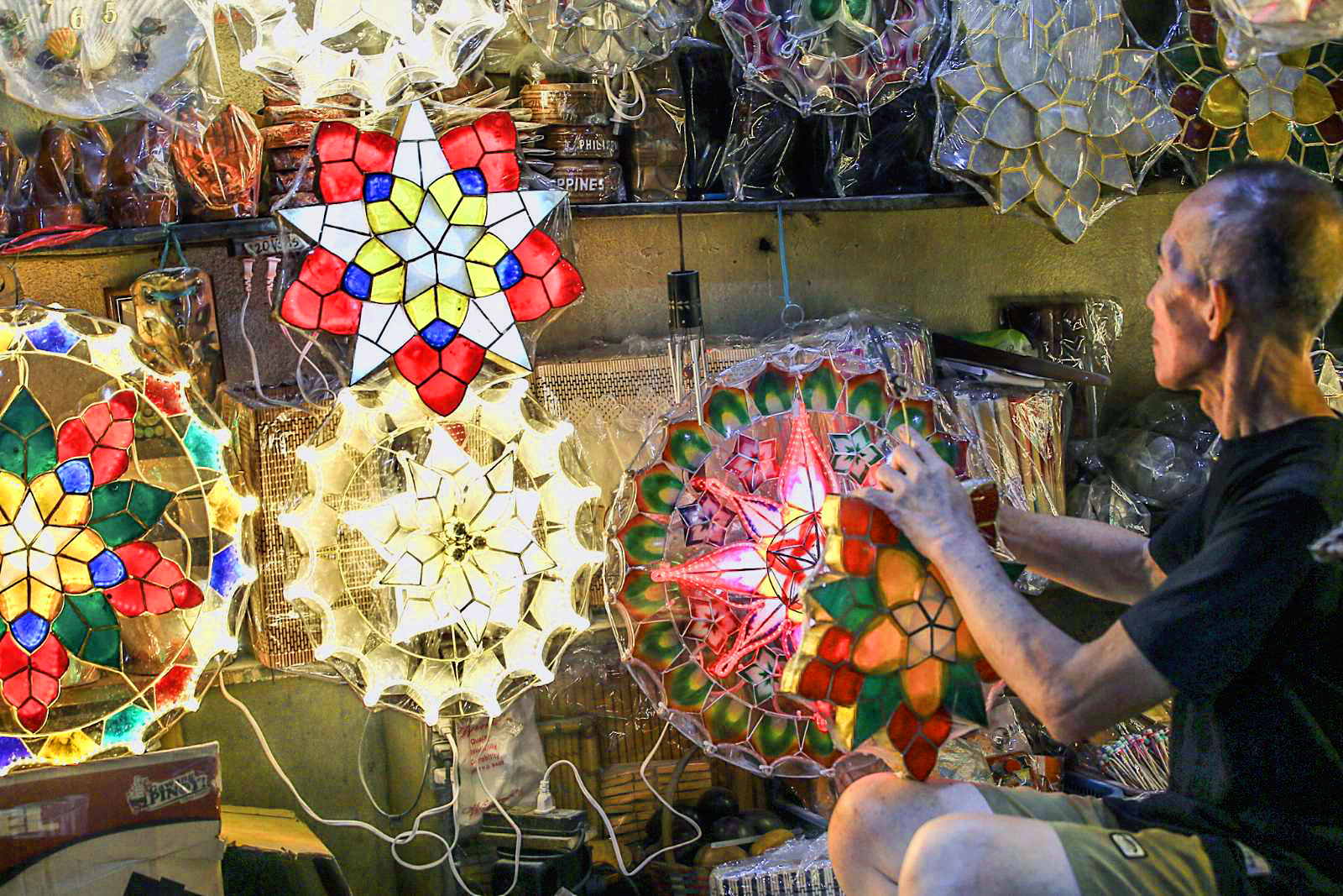 INDUSTRY STANDARDS. A capiz lantern maker is busy crafting new designs and making sure old stocks are in tip-top condition, especially the electrical wires, in Quiapo, Manila, on Sept. 2, 2025. On Oct. 13, the Department of Trade and Industry (DTI) launched the Philippine National Standard for parols to promote safe and world-class Filipino craftsmanship. (Photo courtesy: Joan Bondoc / PNA)
