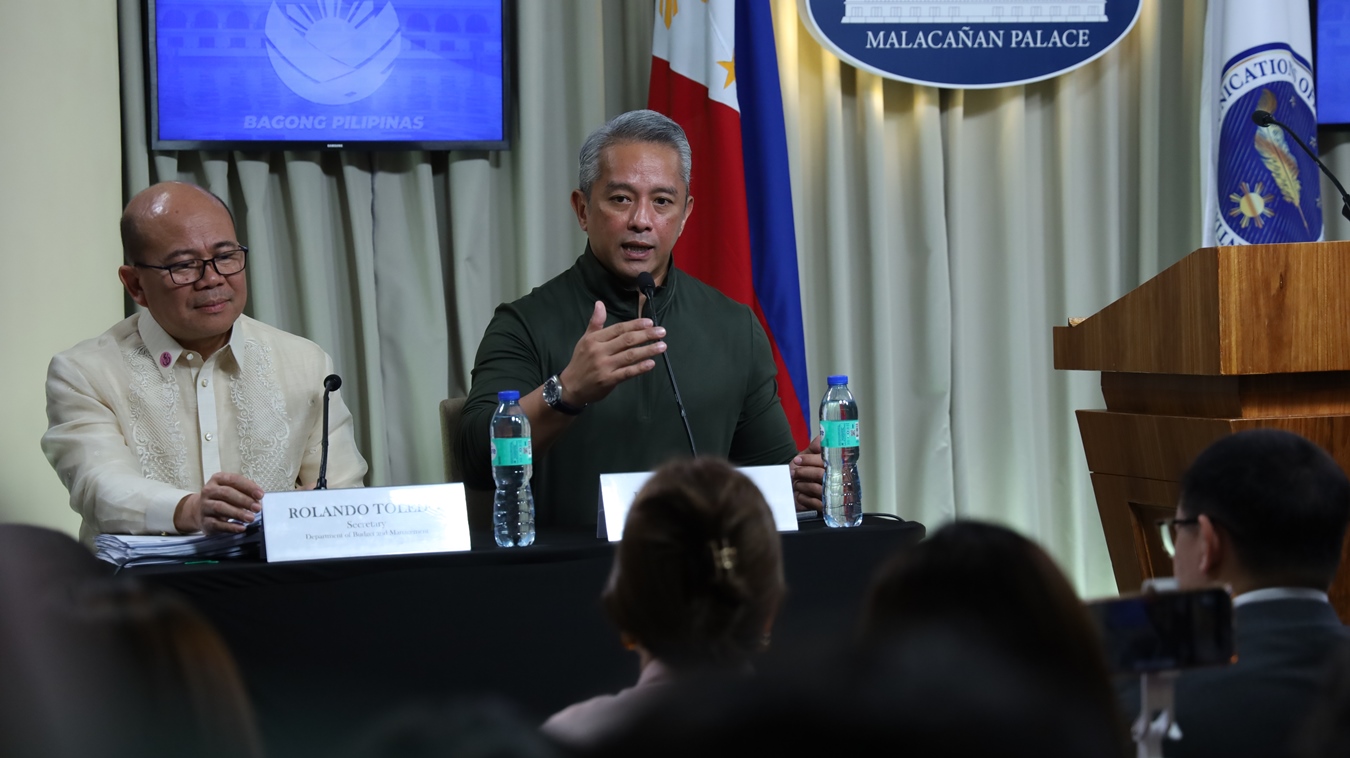 Department of the Interior and Local Government Sec. Jonvic Remulla and acting Department of Budget and Management Sec. Rolando Toledo during a press briefing at Malacañang on Tuesday, Jan. 13, 2026. (Photo courtesy: PCO)