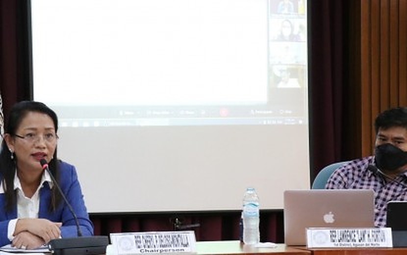 The congressional bicameral conference committee on Wednesday (Nov. 24, 2021) approves a measure raising the age of statutory rape from the current 12 years old to 16 years old to protect young people from sexual exploitation and abuse. Zambales Rep. Cheryl Deloso-Montalla (left) presided over the meeting as head of the House contingent. (Photo courtesy of House Press and Public Affairs Bureau via PNA)