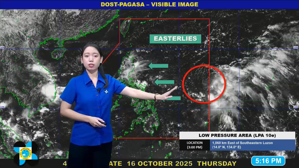 As of press time, easterlies continue to affect most of Luzon, Eastern Visayas, Aklan, and Capiz, which may experience cloudy skies with scattered rains and thunderstorms.