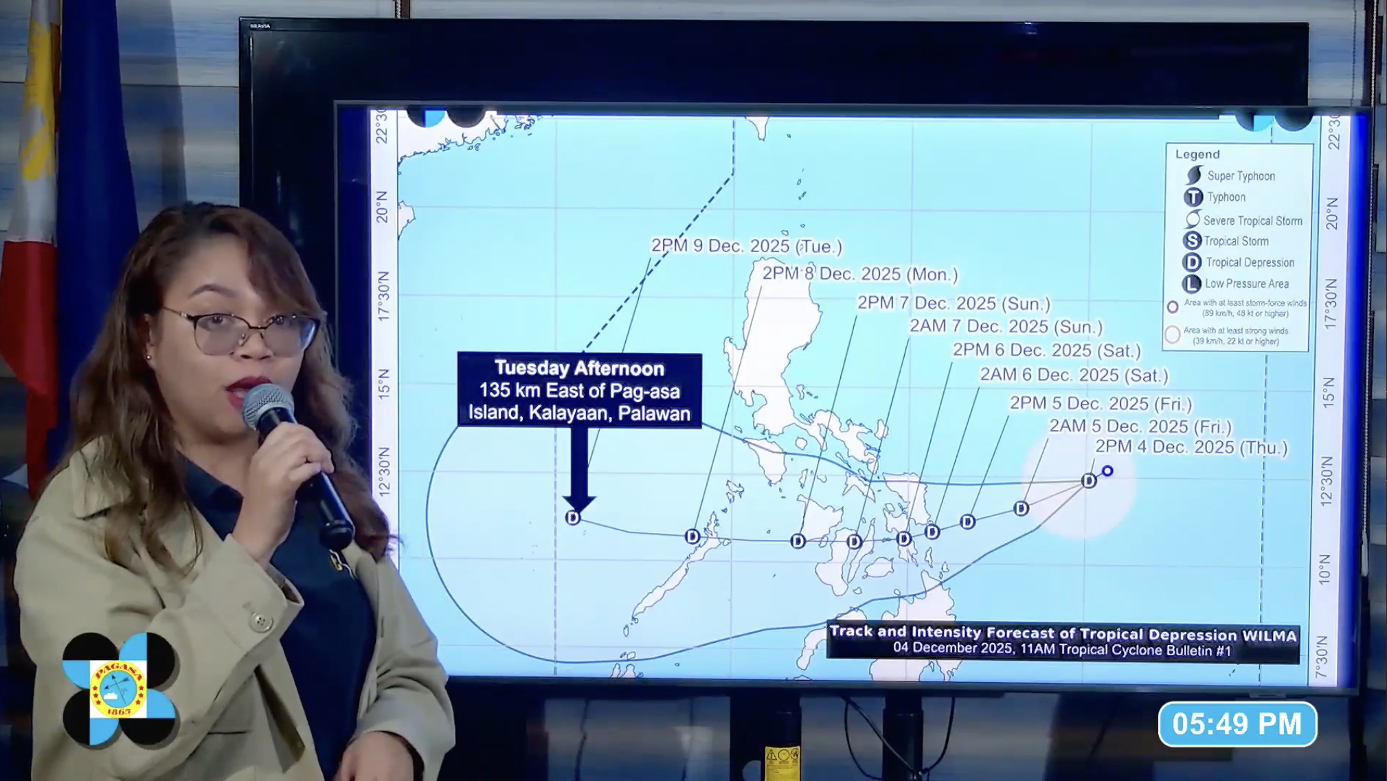 PAGASA weather specialist Charmagne Varilla said Wilma may make landfall in Eastern Visayas or Dinagat Islands between late Friday (Dec. 5) or early Saturday (Dec. 6).