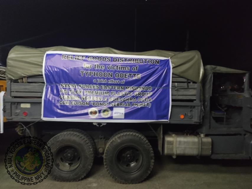 A truck carrying relief goods for typhoon victims. (NFEM Facebook page)