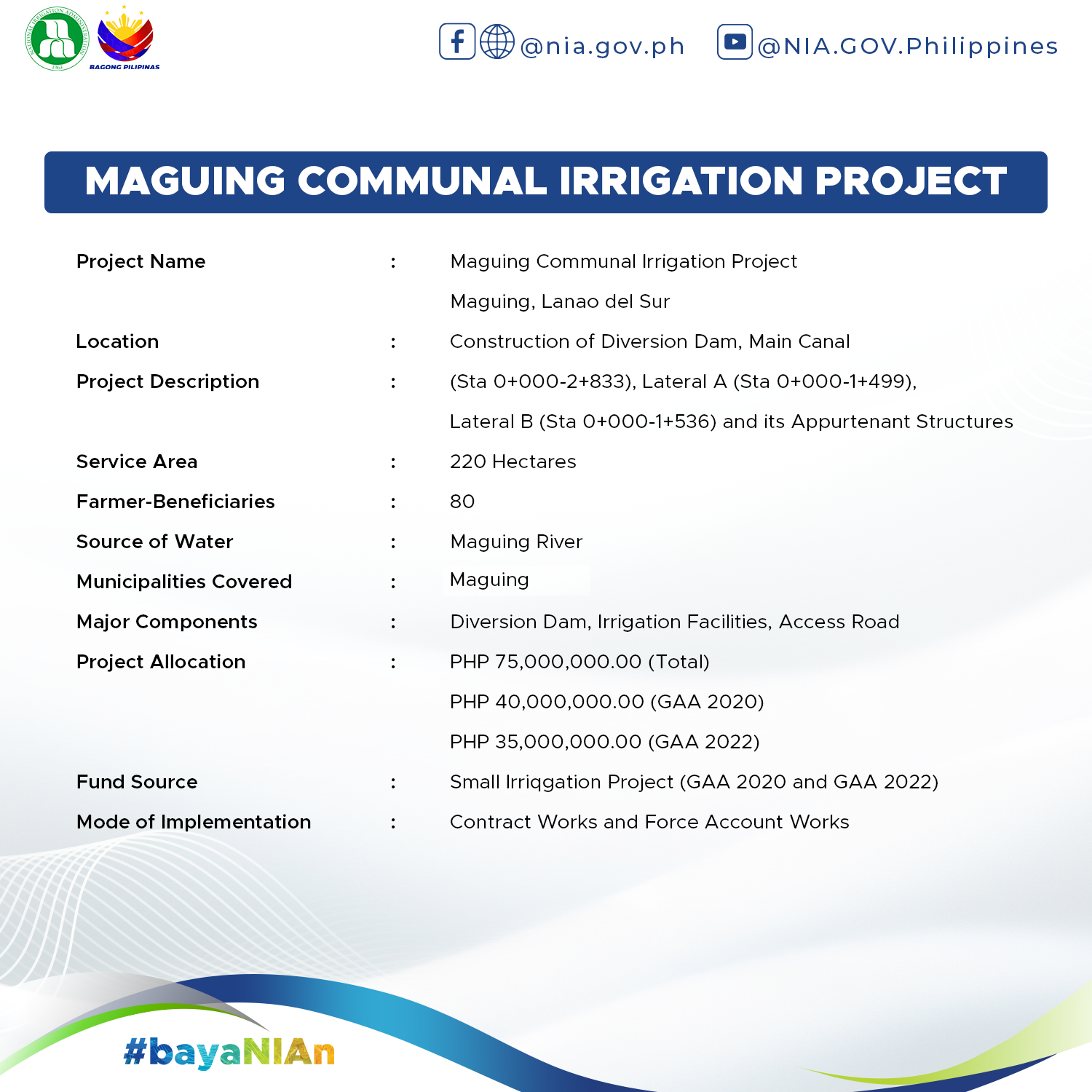 Following the recent events concerning the Agency, NIA has released verified information regarding social media posts about the Maguing Communal Irrigation Project (CIP) in Barangay Bato-Bato, Maguing, Lanao del Sur.