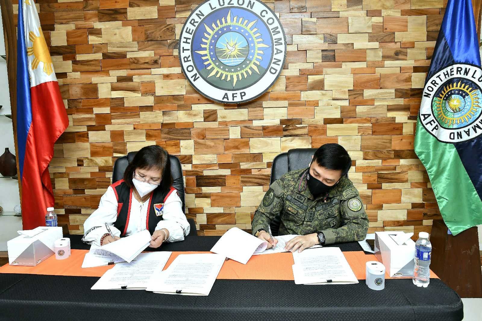 Home Northern Luzon Command and the Department of Social Welfare and Development (DSWD) Region 3 sign an implementing agreement for the establishment of satellite storage at Camp Servillano Aquino, Tarlac City, July 26, 2021. (Photo Courtesy of Northern Luzon Command, AFP) Northern Luzon Command and the Department of Social Welfare and Development (DSWD) Region 3 sign an implementing agreement for the establishment of satellite storage at Camp Servillano Aquino, Tarlac City, July 26, 2021. (Photo Courtesy of Northern Luzon Command, AFP)