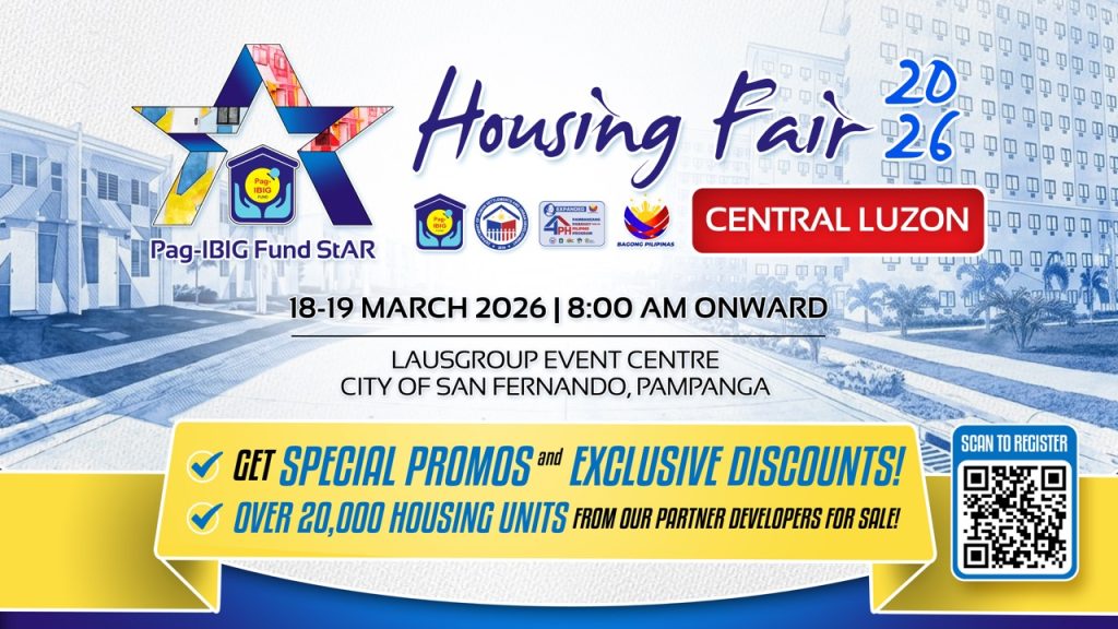 More than 20,000 affordable housing units across Central Luzon will be made available to aspiring homeowners during the Pag-IBIG Regional Housing Fair for Central Luzon, to be held on March 18 and 19 in Pampanga, including homes with monthly payments as low as P3,411 under the government’s Expanded Pambansang Pabahay para sa Pilipino Program (4PH).