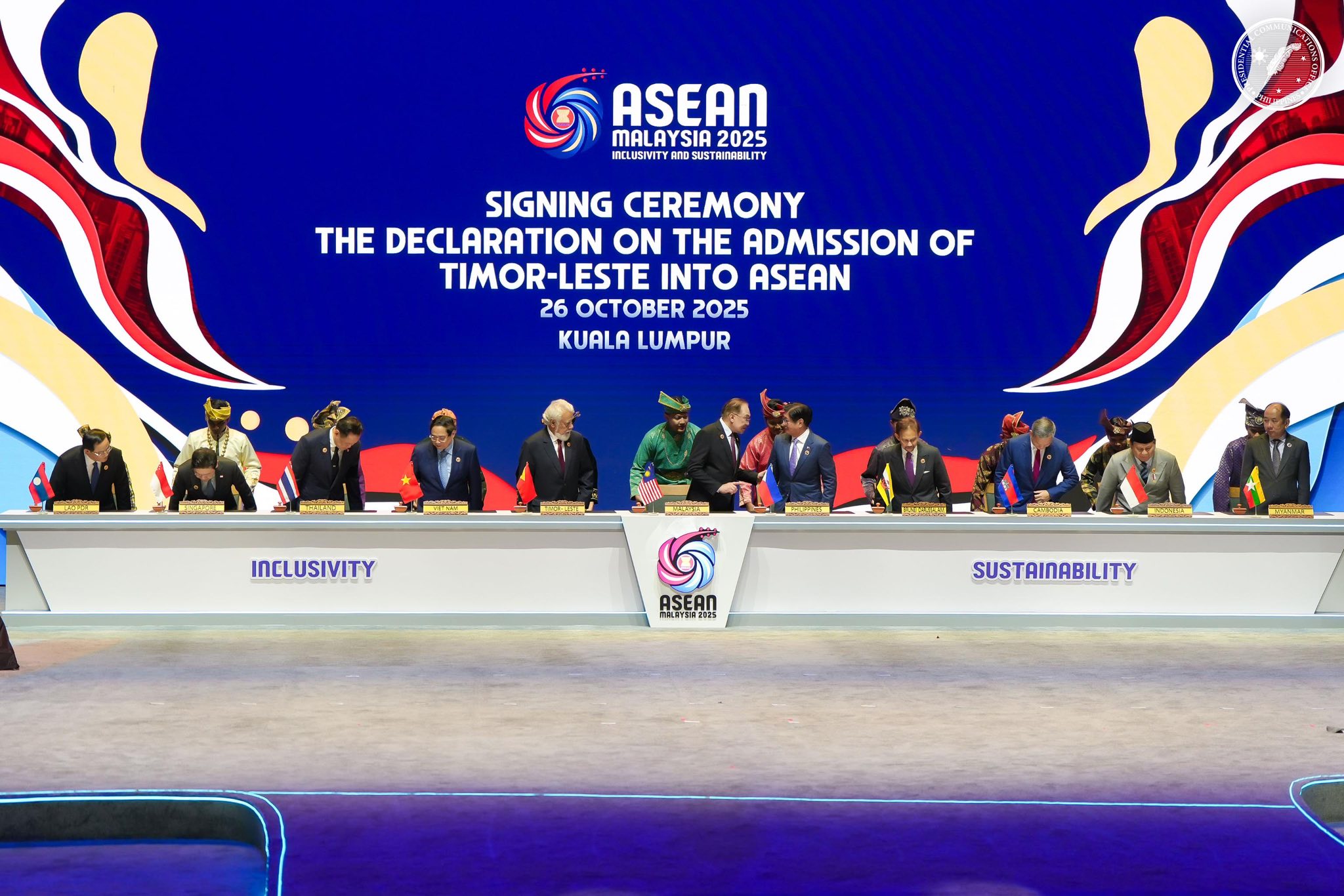The country’s accession to the ASEAN was formalized through the signing of the “Declaration on the Admission of the Democratic Republic of Timor-Leste into ASEAN” during the opening of the 47th ASEAN Summit and Related Summits at the Kuala Lumpur Convention Center (KLCC) in Malaysia on Sunday.