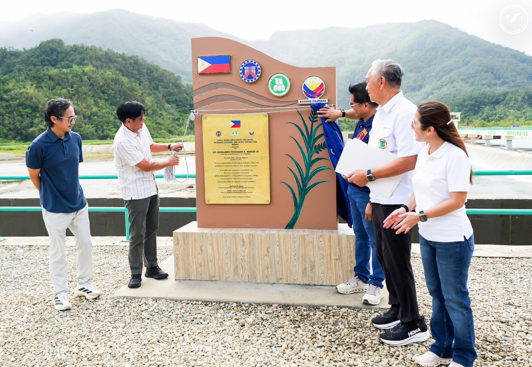 KATUBIGAN PROJECT. President Ferdinand R. Marcos Jr. leads the unveiling of the marker of the newly opened Union Water Impounding Dam in Claveria, Cagayan on Tuesday (Oct. 14, 2025). In a talk with farners, Marcos stressed that the government can build effective flood control infrastructure that will benefit the people. (Photo courtesy: PCO)