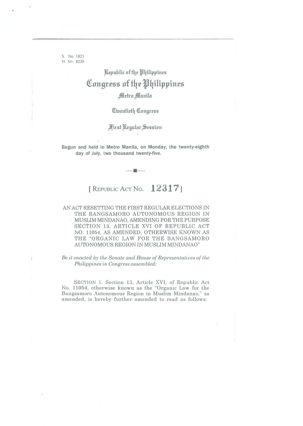 President Ferdinand R. Marcos Jr. on Wednesday signed Republic Act (RA) No. 12317, moving the first regular elections in the Bangsamoro Autonomous Region in Muslim Mindanao (BARMM) to the second Monday of September 2026, or on Sept. 14.