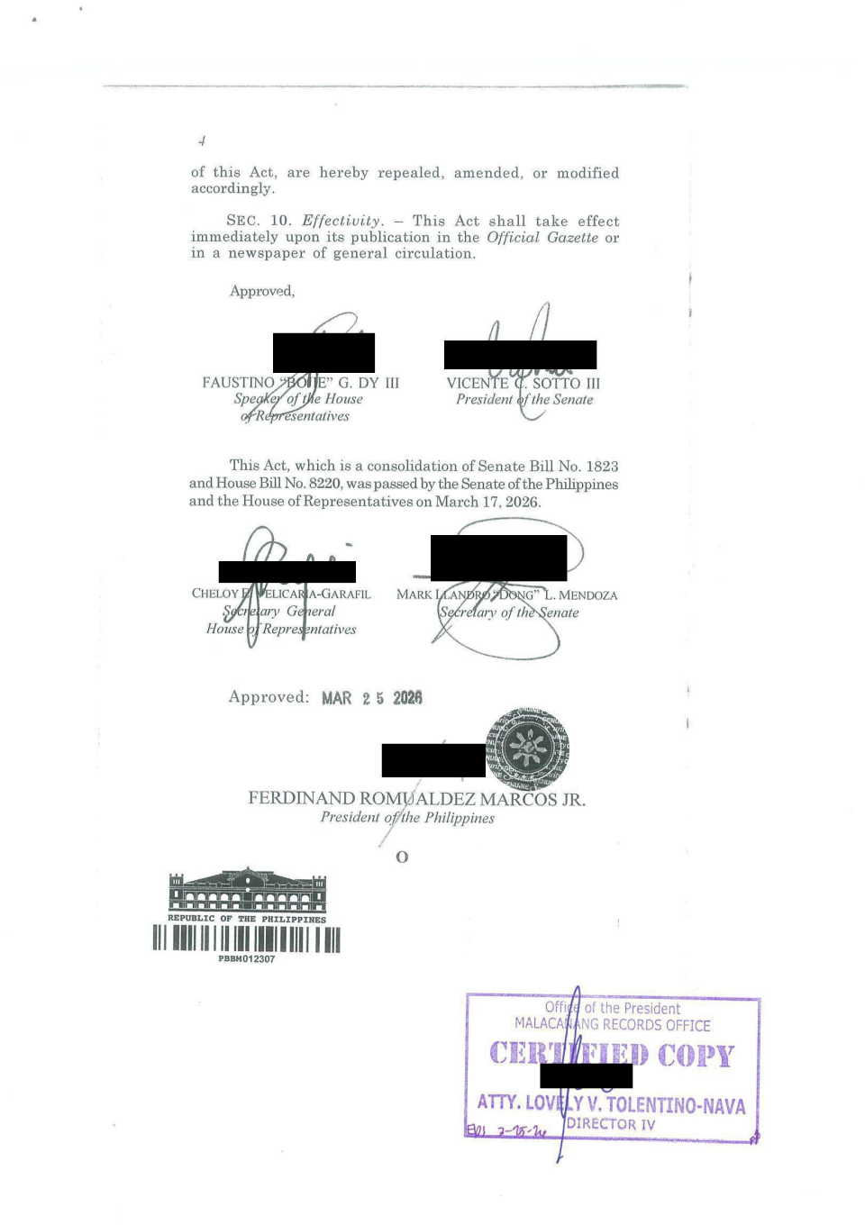 In a press release Thursday, House Speaker Faustino “Bojie” Dy III welcomed the signing of the law, calling it a crucial step toward a more stable and credible transition in BARMM.
