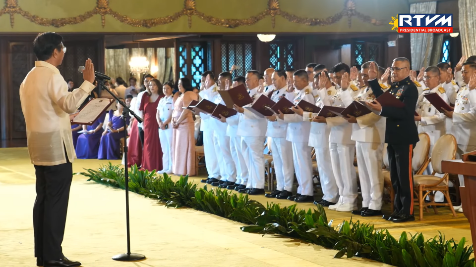At the oath-taking ceremony of 29 newly promoted generals and flag officers and 14 newly commissioned second lieutenants and ensigns from Foreign Pre-Commission Training Institutions (FPCTIs) on Wednesday, President Ferdinand R. Marcos Jr. honored the indispensable contributions of the Armed Forces in serving the country and allied nations in times of need.