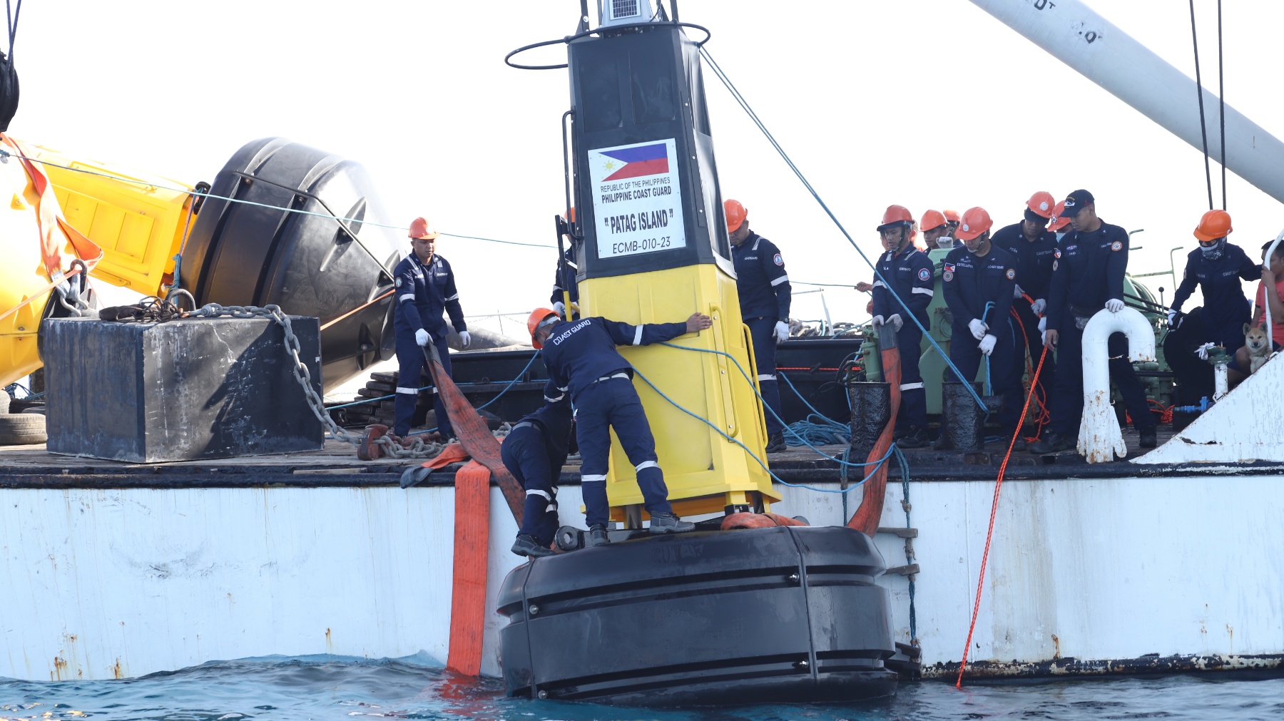 The Philippine Coast Guard (PCG) installs additional buoys in the Kalayaan Island Group, May 2023. (Photo courtesy of PCG)