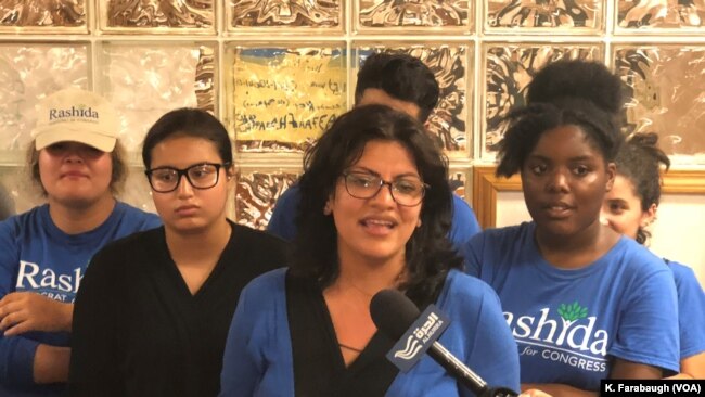 “As a Muslim American, as an Arab American, as a Palestinian American… I’m her, she’s me,” she told VOA during a break in distributing Tlaib’s campaign literature outside a polling station.