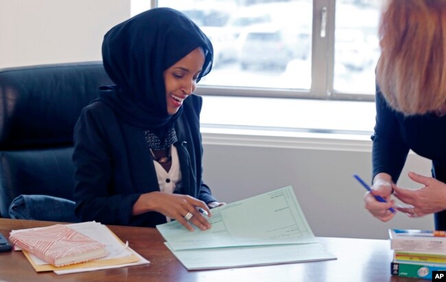 There could soon be more like her. Somali American Muslim lawmaker Ilhan Omar is running for a Congressional seat in Minnesota on August 14, and could eventually serve alongside Rashida Tlaib in the U.S. Congress. (Kane Farabaugh/Voice of America)