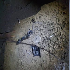 A careful inspection was immediately conducted which resulted in the discovery of two electric blasting caps, one rifle grenade, one spark plug, and concrete nails.