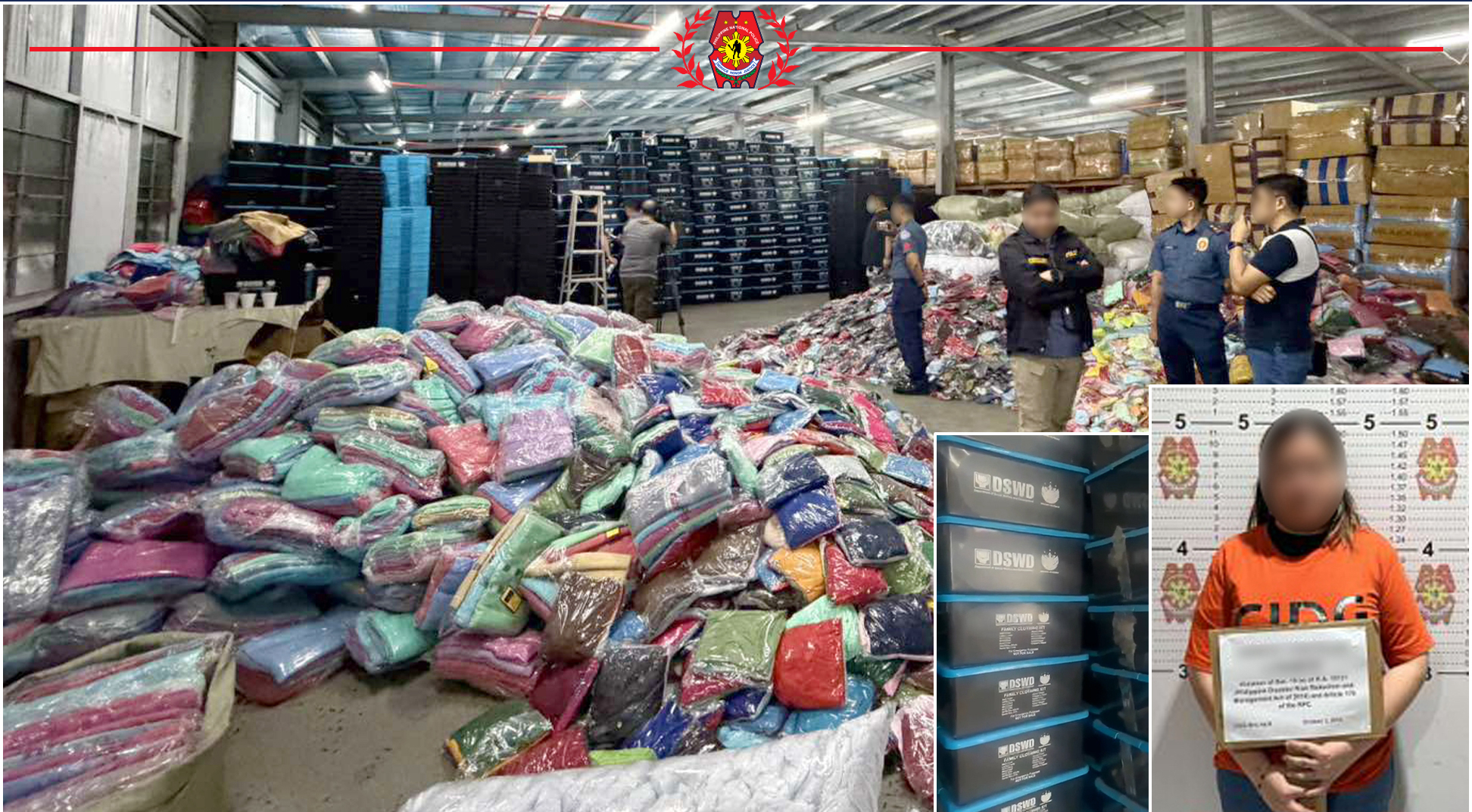 In a press briefing at Camp Crame in Quezon City, Criminal Investigation and Detection Group (CIDG) Public Information Chief, PMaj. Helen dela Cruz said alias “Janice” was arrested selling 6,000 “DSWD Family Kits” marked “not for sale” and bearing the “Bagong Pilipinas” logo for P2,588 per unit at a warehouse in Barangay 56, Tondo, Manila.
