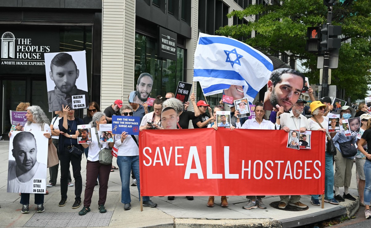 Protesters rally outside the White House as Israeli Prime Minister Benjamin Netanyahu visits with U.S. President Donald Trump in Washington, D.C. on September 29, 2025. (Photo courtesy: Andrew Caballero-Reynolds / AFP)